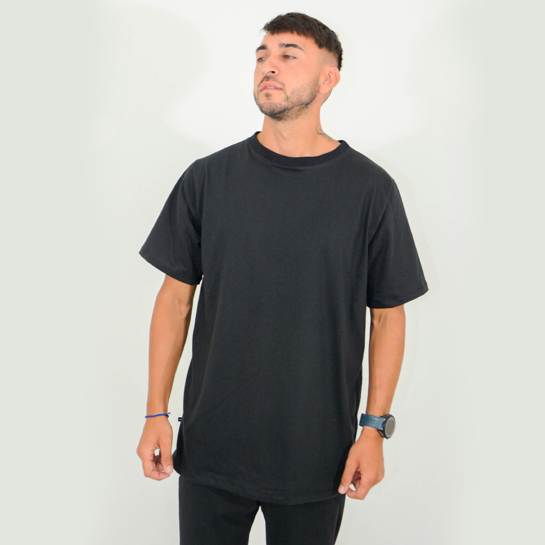 Perfecta para combinar con jeans, shorts o joggers, esta remera amplia de hombre es un básico imprescindible en tu guardarropa.